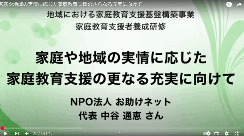 本動画は、令和4年度に実施した「家庭教育支援者養成研修」の講演動画です。