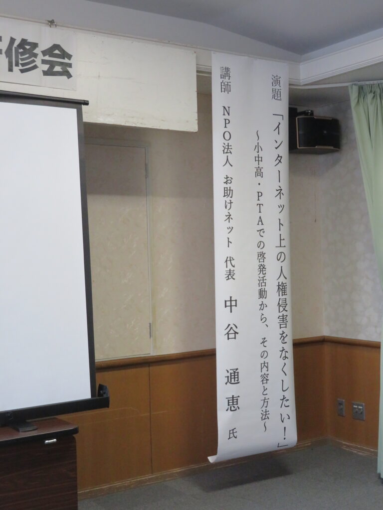 滝川人権擁護委員協議会様よりお声掛けいただいて、新十津川町で開催された研修会で、「インターネット上の人権侵害をなくしたい!〜小中高校・PTAでの啓発活動から,その内容と方法~」のテーマで、1時間半講演させてもらいました。